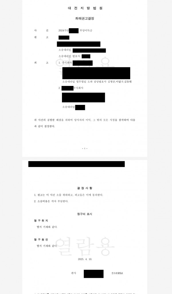 부당이득반환청구소송 화해권고(소취하)로 전부방어 성공